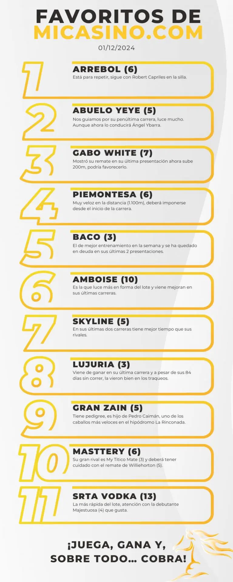 Recuerda que podrás hacer tus apuestas en MiCasino.com al hipismo venezolano el mismo domingo 1 de diciembre.