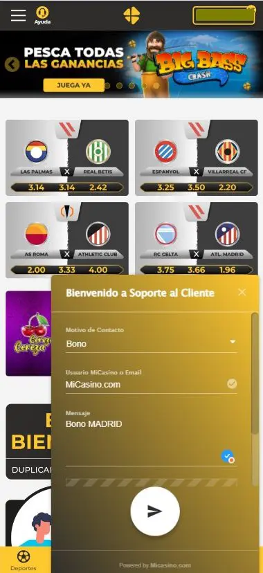 El Bono MADRID lo podrás reclamar únicamente en el chat de nuestro casino en línea.
