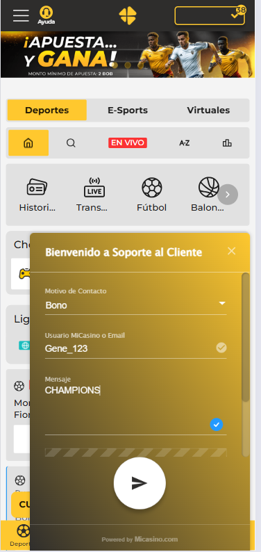 Para solicitar el Bono CHAMPIONS en MiCasino.com deberás seguir estos pasos: