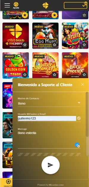 Para solicitar el Bono ESTRELLA en MiCasino.com debes seguir los siguientes pasos:
