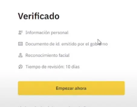Luego debes seleccionar la opción “Comenzar ahora” para dar inicio a la verificación de tu cuenta en Binance.