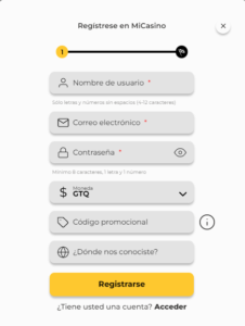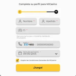 - Luego de esto debes completar tu perfil en MiCasino.com con tu cédula, DNI, DPI o pasaporte, tu número de teléfono y fecha de nacimiento.