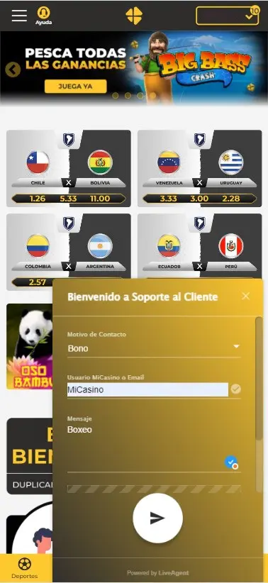 - El bono BOXEO solo se podrá utilizar en apuestas simples o combinadas con cuotas mayores a 1.50 en la sección de apuestas deportivas de MiCasino.com.