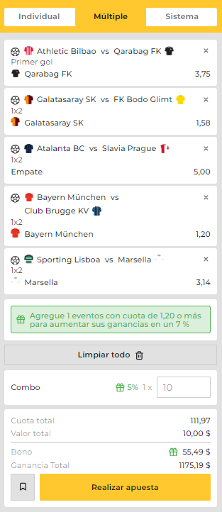 Consideramos que para este partido el local, Bayern Múnich, tiene todas las de llevarse una victoria, dado que ha ganado todos los encuentros disputados en esta temporada 2025/2026, mientras que Club Brujas perdió su último compromiso por Champions de visitante ante Atalanta.