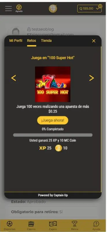 De momento, solo estará disponible para juegos de casino. Además, los retos pueden cambiar de manera semanal.