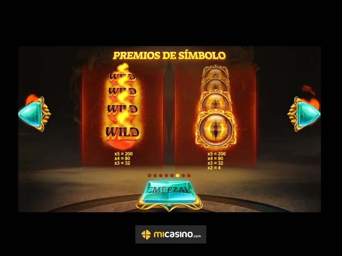 Los símbolos especiales que aumentarán tus ganancias en el Dragons Fire de MiCasino.com son: WILD Dorado y el Ojo de Dragón Dorado. Con estos símbolos podrás conseguir grandes ganancias al momento de apostar.