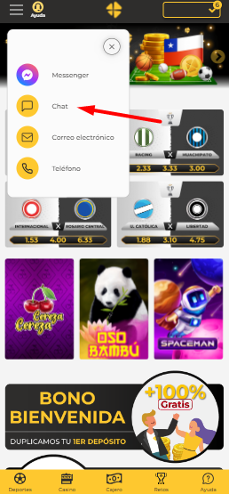 - Paso 2: Tras iniciar sesión, solicitar el Bono MiCasino por el Chat de la página