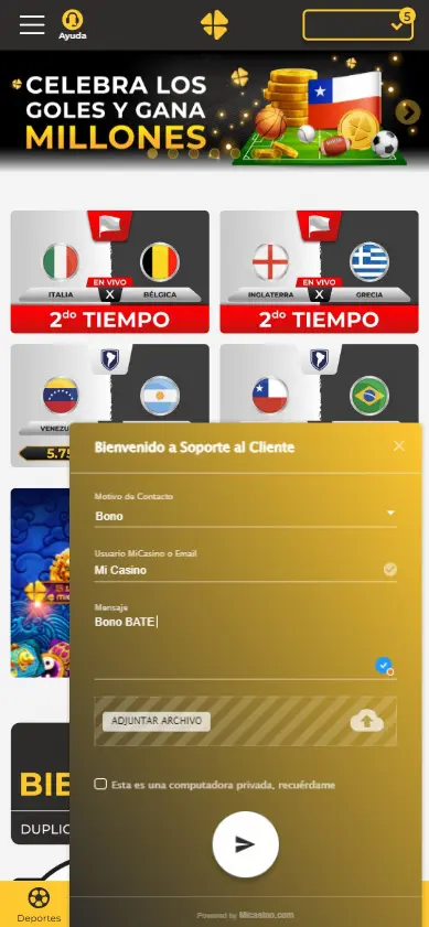 - El bono BATE te permite hacer apuestas en las secciones de casino y deportes (excluyendo el casino en vivo).