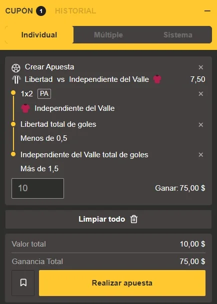 Apostar nunca fue tan emocionante como en MiCasino, te dejamos el mejor pronóstico deportivo para el partido Libertad vs Independiente del Valle de la Copa Libertadores, el cual te lleva directo a la gloria y a multiplicar tu dinero.