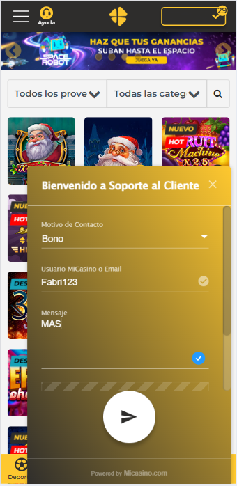 - Ubica el Chat de Ayuda de nuestro casino online.