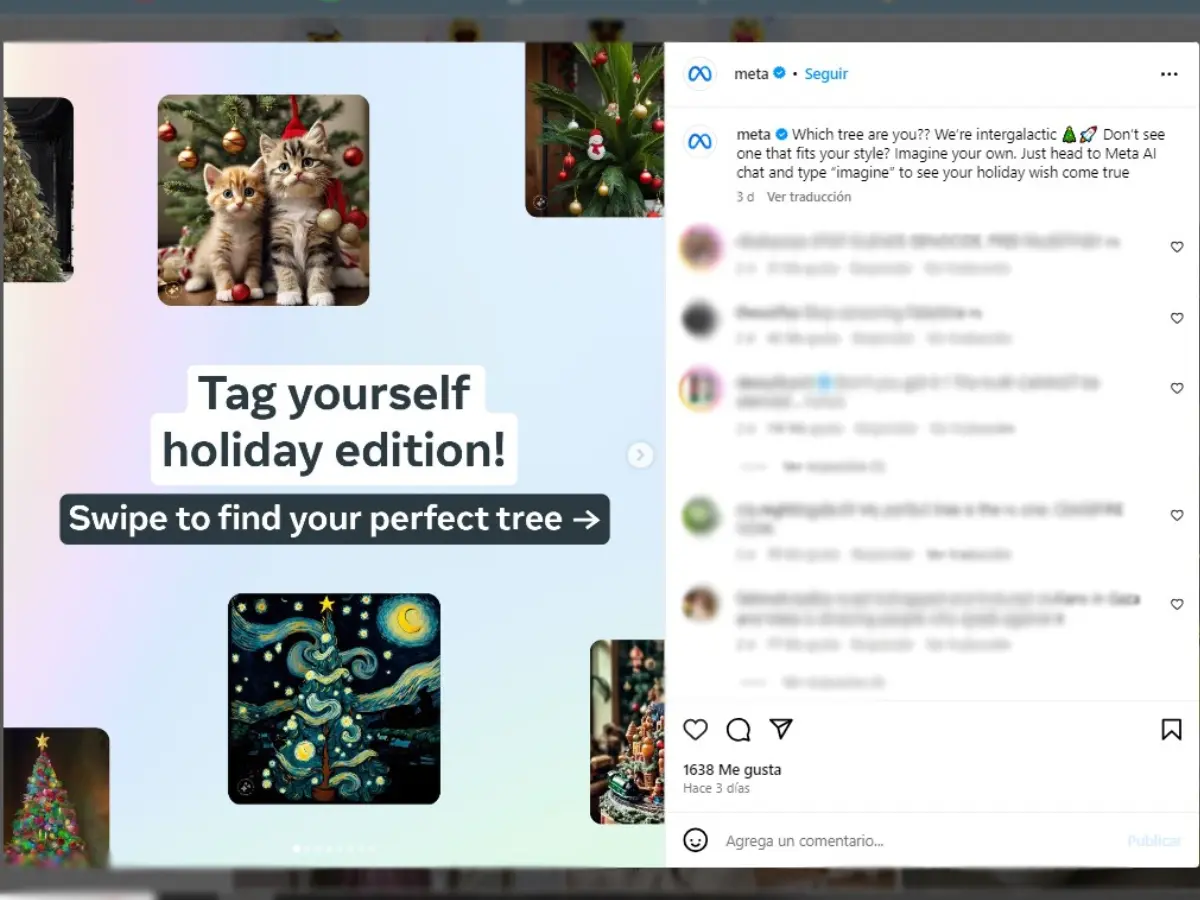 Para poder hacer uso de Imagine en Instagram, los usuarios deben ingresar a un chat grupal y etiquetar a @metaAI. Luego, deben escribir el comando “/imagine” seguido de una descripción de la imagen que desean crear. Por ejemplo, “/imagine un gato jugando con una bola de hilo“. La inteligencia artificial procederá a generar la imagen y la enviará al chat para que todos los participantes puedan visualizarla.