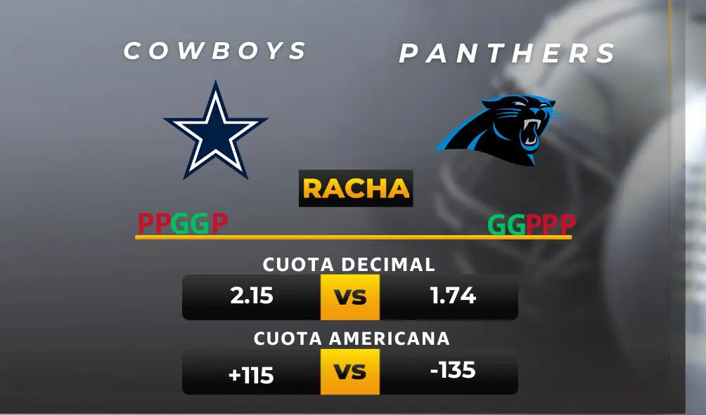 - Panthers ha perdido sus últimos 2 partidos ante Cowboys.