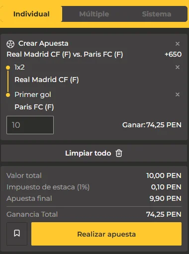 ¿Cuánto puedo ganar si apuesto $10 por Real Madrid Femenino?