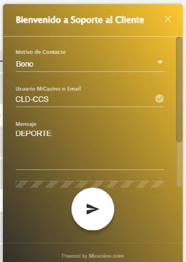 - Selecciona el motivo de contacto, en este caso debes escoger “Bono”