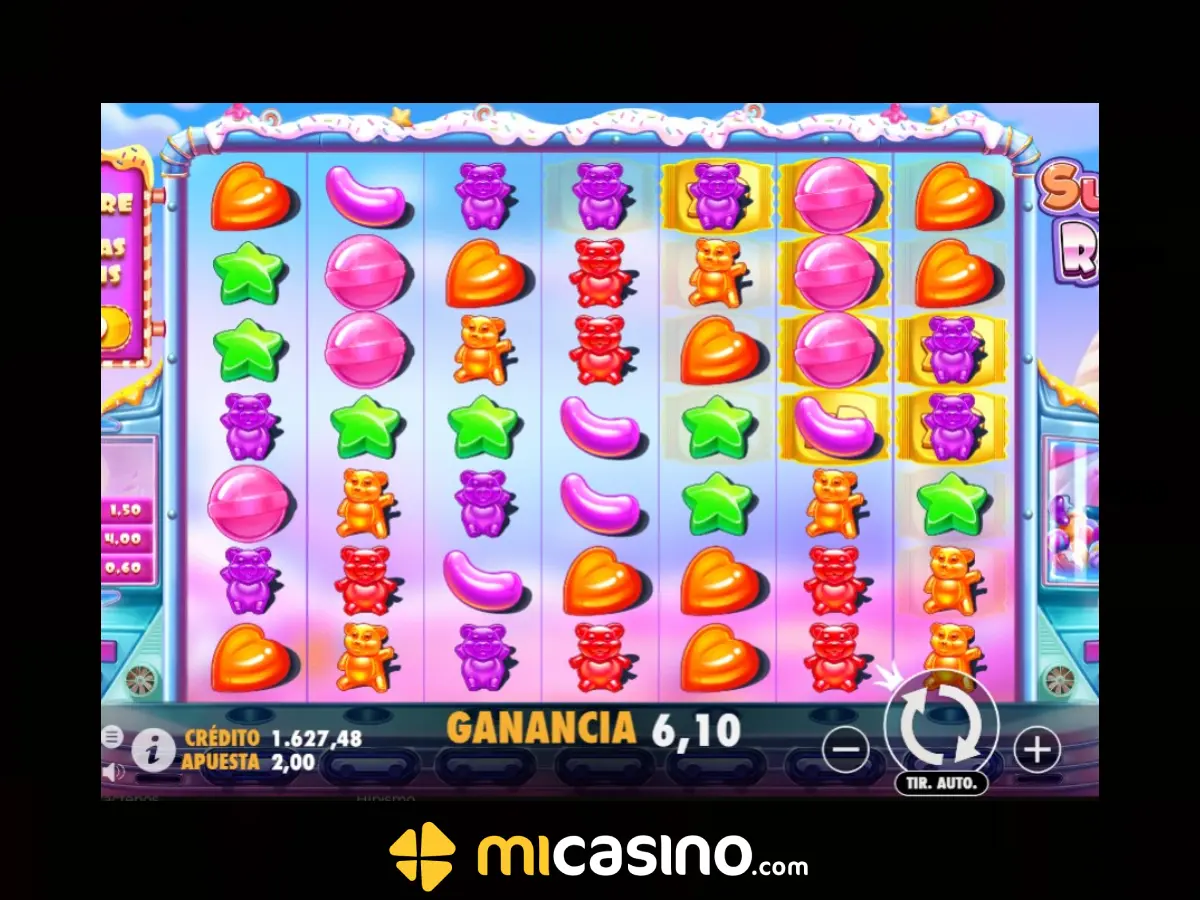 Slot Sugar Rush es un clásico juego de tragamonedas de casino online, desarrollado por la firma Pragmatic Play. El juego se centra en un mundo dulce y colorido lleno de golosinas y postres, con diversos premios al momento de apostar.