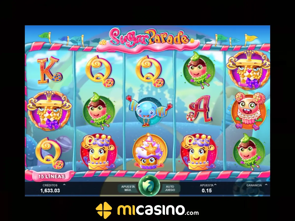 Para iniciar con el top 5 de los slots de la semana disponibles en MiCasino.com te presentamos Slot Sugar Parade, un juego de tragamonedas en línea desarrollado por la compañía Microgaming. El tema del juego gira en torno a un mundo de dulces y golosinas, ofreciendo una experiencia de juego divertida y colorida.