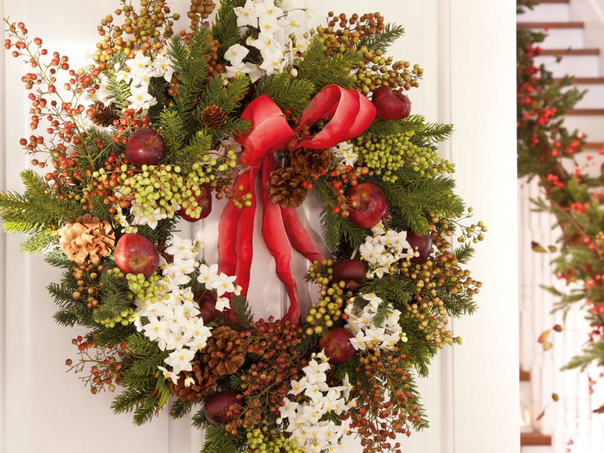 Muchos optan por no colocar el tradicional árbol, por falta de espacio o tiempo y se inclinan por decorar sutilmente algunos espacios con pequeños detalles. Y la corona de la puerta principal o incluso en otro portal de la casa pasa a ser la gran protagonista.
