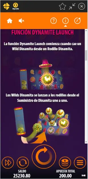 Esta bonificación la puedes activar cuando cae un Wild Dinamita desde un Rodillo Dinamita, luego los Wilds Dinamita del suministro son lanzados uno a uno a los carretes dejando jugosas ganancias.