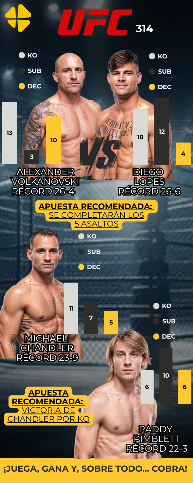Lee también: Alexander Volkanovski vs Diego Lopes – Pronóstico UFC 314